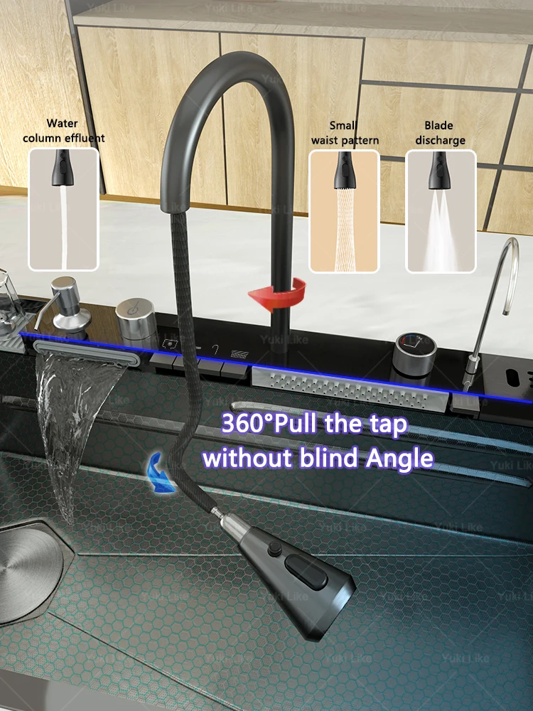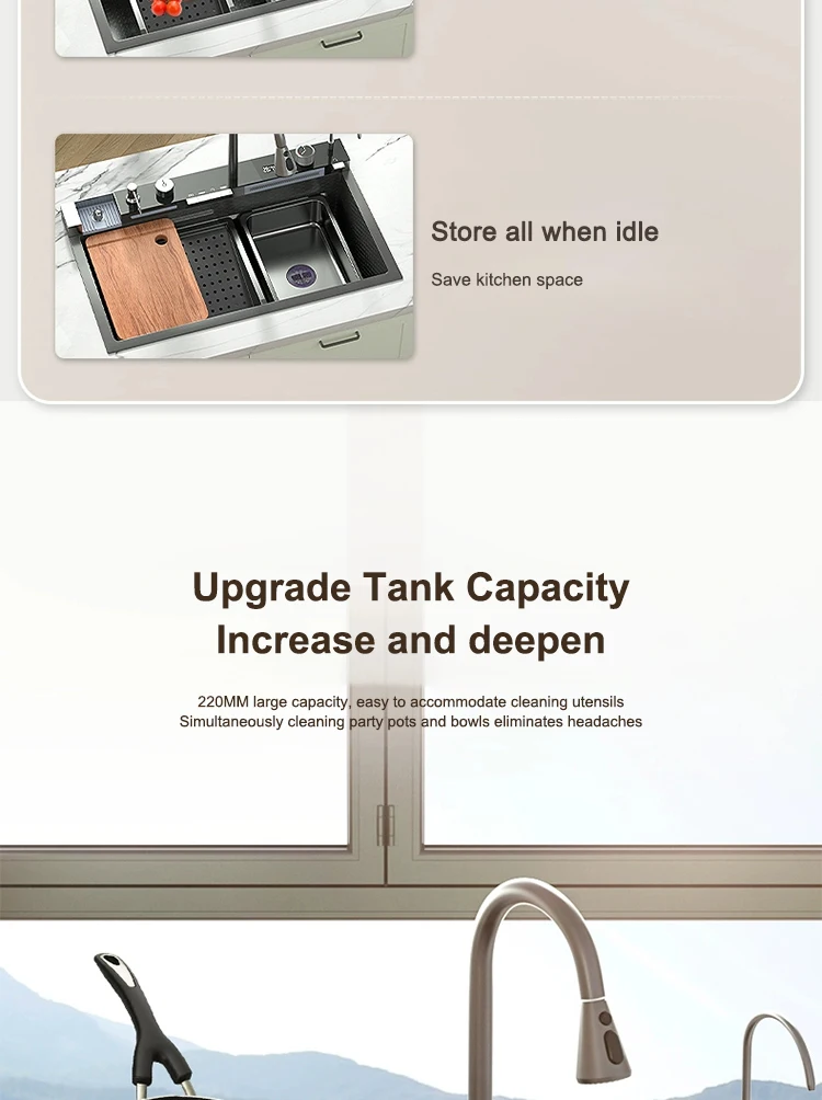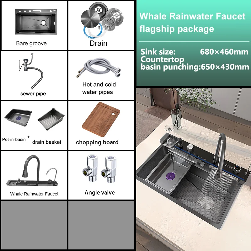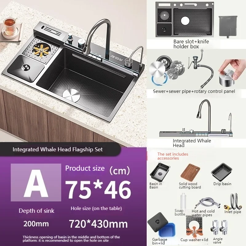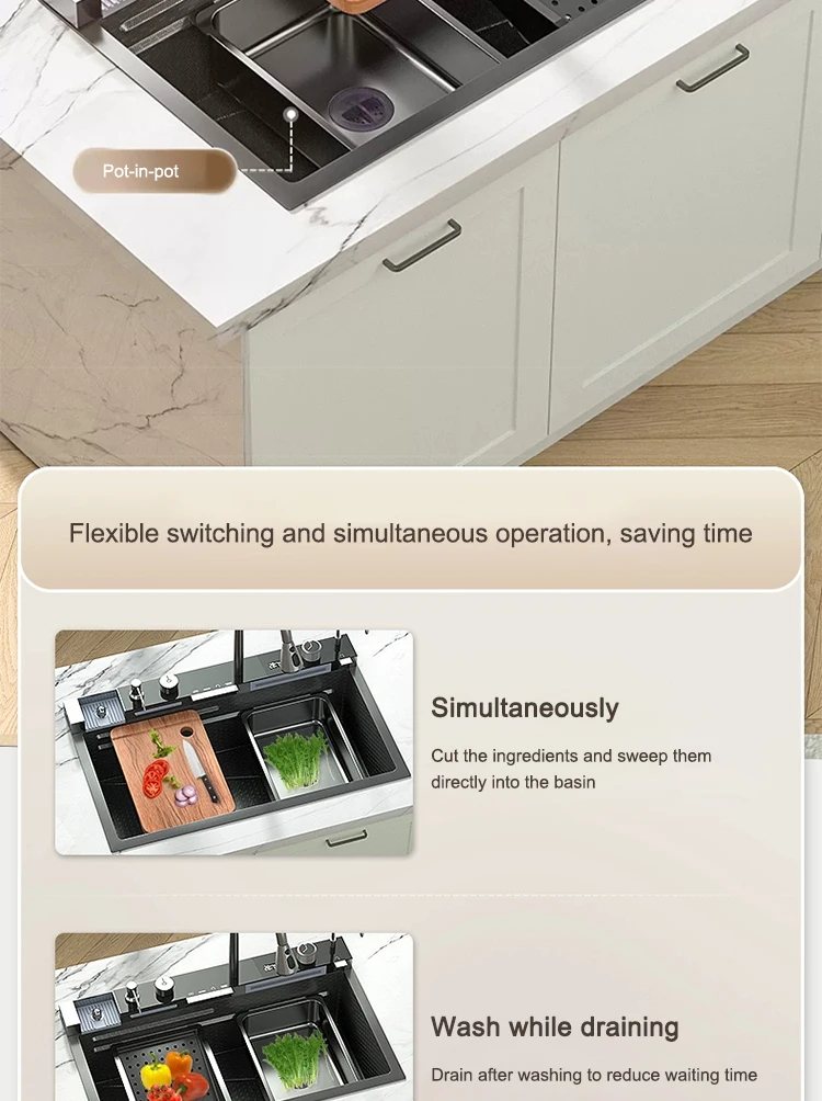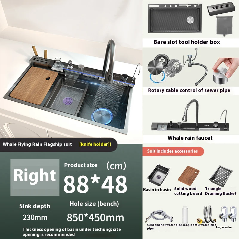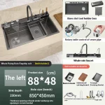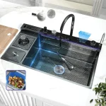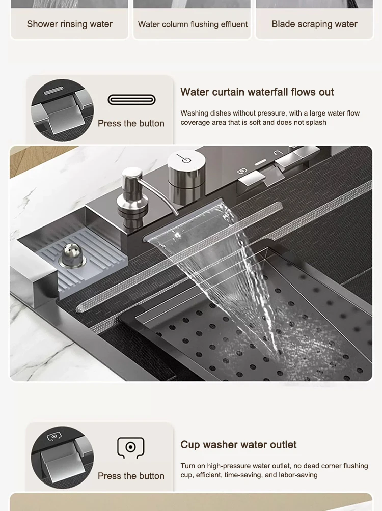 Stainless Steel Waterfall Kitchen Sink w/Cup Washer
