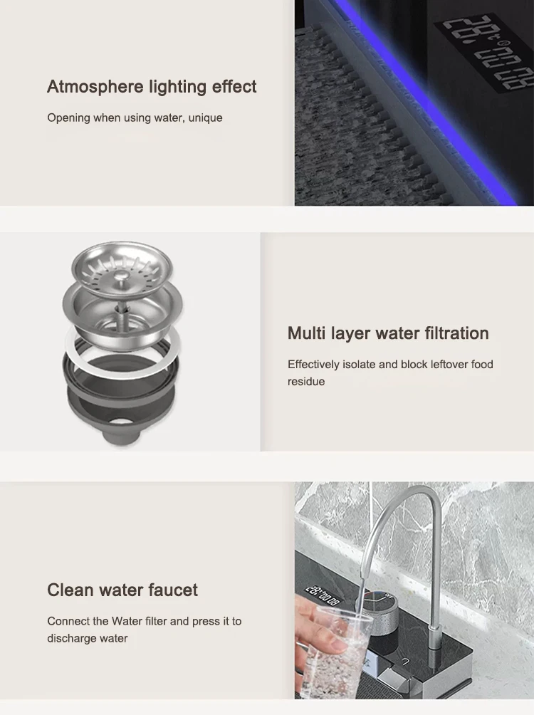 Be the first to review “Stainless Steel Waterfall Kitchen Sink w/Cup Washer”